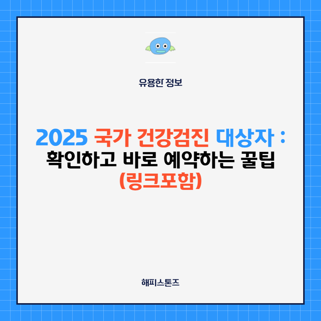 📅 2025년 국가 건강검진 대상자는 연령, 직장가입 여부, 의료급여 수급자 여부에 따라 달라집니다. 무료 검진 대상자 확인 방법, 검진 항목, 예약 팁까지 한 번에 정리해드립니다. 불필요한 추가비용 없이 건강검진을 받으려면 꼭 확인해보세요!